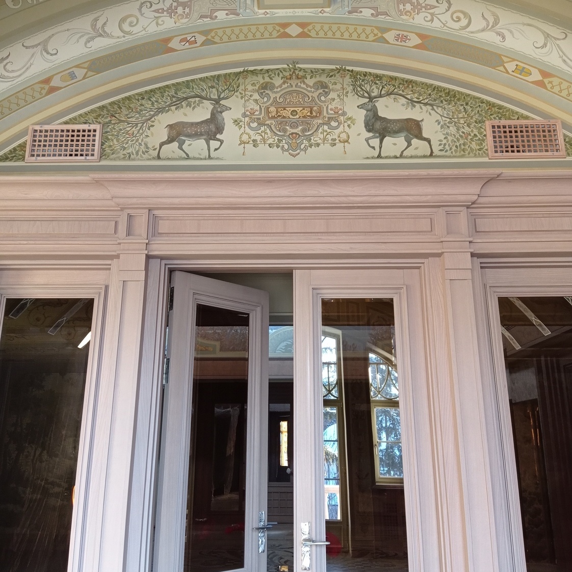 Мы специализируемся на художественной росписи, золочении лепнины, а также выполняем реставрацию мебели, паркета, окон, дверей любой сложности